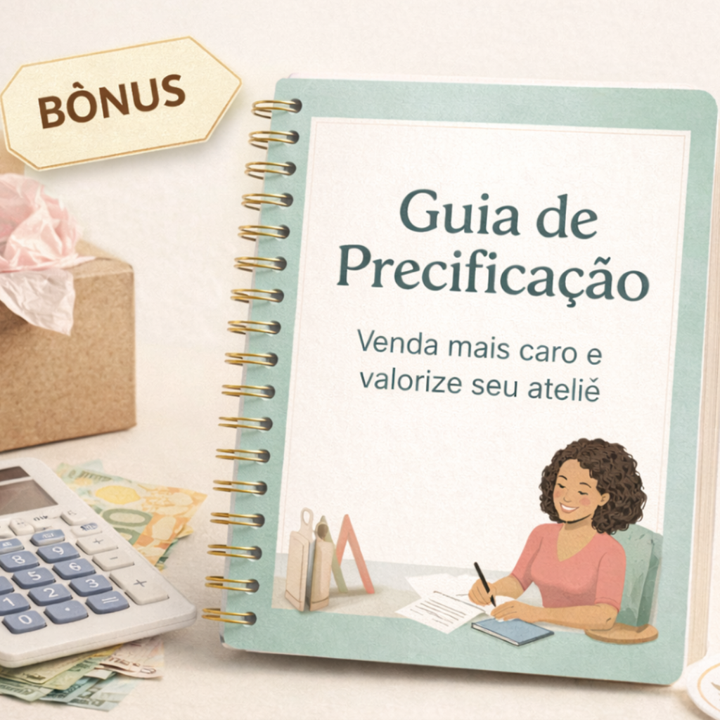 Tudo já vem pronto, com moldes, medidas e artes organizadas para você usar sem erro.